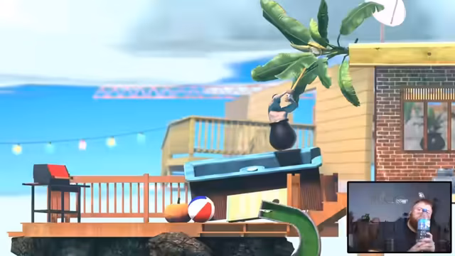 00:28:08Ein großer Teil des Streams widmet sich dem Spiel 'Getting Over It'. Der Streamer kommentiert frustriert und humorvoll seine anhaltenden Versuche, eine besonders schwierige Stelle im Spiel zu meistern. Dabei thematisiert er die sperrige Steuerung, die repetitive Natur des Spiels und zitiert philosophische Texte, die den emotionalen Aufwand der Herausforderung widerspiegeln.