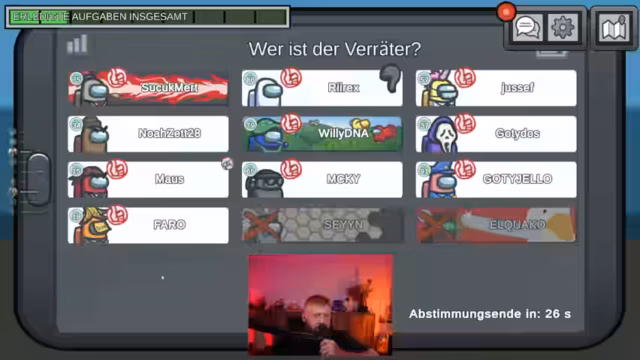 04:25:34Die aktuelle Among Us-Runde findet ein abruptes Ende. Die Mitspieler entscheiden sich, bestimmte Personen wie Matze und Eldos auszuschließen, nachdem sie sie für die Verräter halten. Der Streamer fängt an, über einen Punktestand und mögliche Strafen für die Mitspieler zu diskutieren. Es werden Abzüge für die Mitspipler angekündigt, die ihm das Spiel "vermasselt" haben. Die Runde endet in einem Chaos aus Schuldzuweisungen und Enttäuschung über das Spielende.