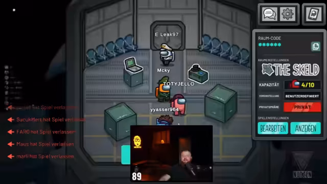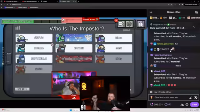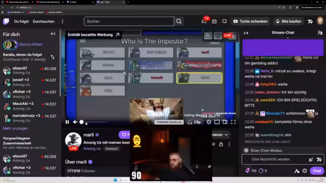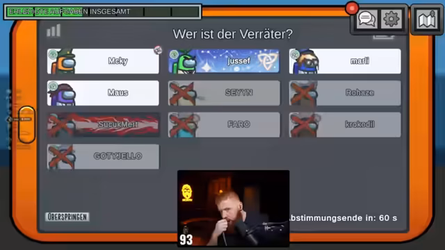 01:19:21In einer Among-US-Runde kommt es zu hitzigen Diskussionen über verdächtiges Verhalten. Spieler werfen Jussef vor, unerklärlich gelaufen zu sein, und spekulieren über die Manipulation durch einen Shapeshifter. Der Chat beteiligt sich intensiv an der Analyse möglicher Impostor-Strategien, während das Gameplay ungewöhnliche Verläufe zeigt und Verwirrung über Positionen und Kills entsteht.