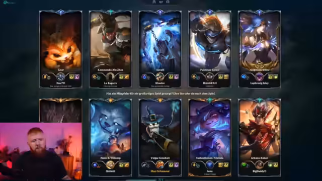 12:29:53Der Streamer gibt bekannt, dass er am 18.10. gegen Shoyoka in einem Boxkampf antreten wird und kündigt an, sie zu one-shotten. Er äußert den Wunsch nach Spaß am Spiel und weniger Stress, anstatt einem strikten Rank-Ziel nachzugehen. Der Streamer kommentiert das aktuelle Spielgeschehen, einschließlich der langen Dauer von CC-Effekten und der Notwendigkeit von Anti-Heal. Er diskutiert Item-Builds und Strategien mit dem Chat und betont die Bedeutung von Teamwork und Vision. Es wird die Frage nach dem Schwierigkeitsgrad bestimmter Champions beantwortet und Tipps für Anfänger gegeben. Der Streamer lobt die Spielweise der Miss Fortune und gibt Ratschläge für das Spiel. Es wird die Wichtigkeit von Drake und Baron hervorgehoben und die Fähigkeit des Streamers, Spiele einzuschätzen, betont. Nach einem Sieg ohne Arizona wird spekuliert, ob dies Zufall ist. Der Streamer kündigt an, morgen wieder 30 Stunden zu streamen und verabschiedet sich von den Zuschauern, wobei er sie zu Ferdinand schickt.