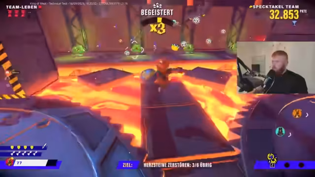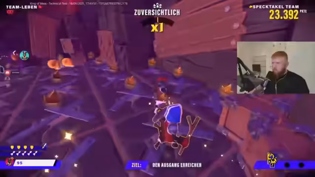 02:47:23Ein Spieler erhält einen Hammer als neue Waffe und erkundet dessen Fähigkeiten. Die Gruppe startet einen Jump'n'Run Dungeon, der sich als herausfordernd erweist. Durch einen Fehler wird eine Tür geöffnet, die zu einer großen Kiste führt. Die Spieler verlieren Gold und müssen zusammenarbeiten, um Hindernisse zu überwinden und nicht herunterzufallen. Enten im Spiel lenken von den eigentlichen Aufgaben ab. Ein Spieler stirbt und verliert Gold, während die anderen versuchen, ihn zu retten. Die Gruppe arbeitet zusammen, um Schalter zu aktivieren und versteckte Bereiche zu finden. Teamwork ist entscheidend, um Kisten zu erreichen und gemeinsam voranzukommen. Trotz einiger Schwierigkeiten und Verluste setzen sie ihre Erkundung fort und suchen nach Wegen, die Herausforderungen zu meistern.