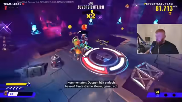 01:58:38Der Streamer startet Playzone mit Zuschauern. Es wird geklärt, wie man die Zuschauer in-game findet und Freundschaftsanfragen verschickt. Einer der Zuschauer muss erst das Tutorial durchspielen, um in den Mehrspieler-Modus zu gelangen. Während der Zuschauer das Tutorial spielt, machen die anderen eine Runde ohne ihn. Der Streamer trinkt in der Zwischenzeit Mezzo Mix. Er erklärt, dass man im Spiel Akkus in ein Ziel werfen muss, um voranzukommen. Der Streamer bittet den Chat, ihn zu informieren, falls es bei Saint im anderen Spiel Probleme gibt. Nach dem Tutorial erklärt der Streamer die verschiedenen Belohnungen und Skins, die man im Spiel freischalten kann. Es wird ein weiterer Dungeon gestartet, diesmal im "Butterweich"-Modus. Der Streamer nimmt eine Einladung ins Team an und es wird überlegt, ob es ein Jump'n'Run, ein Rätsel oder einen Kampf geben wird.