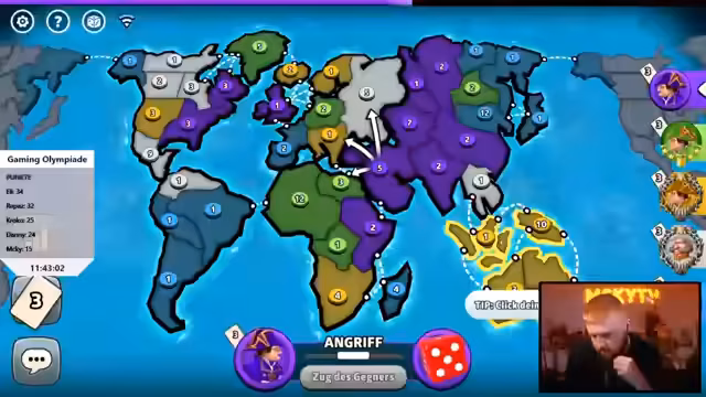 04:14:17Es herrscht Frustration, da das Spiel für einige Teilnehmer unverständlich ist. Die Frage, warum ein unbekanntes Spiel in die Rotation aufgenommen wurde, wird aufgeworfen. Trotzdem wird betont, dass es sich nur um eines von 18 Spielen handelt und jeder Teilnehmer in anderen Spielen seine Stärken zeigen konnte. Es wird der Wunsch geäußert, dass die Spiele zumindest grundlegend bekannt sein sollten. Das Tutorial wird als schlecht empfunden. Es wird erklärt, dass das Ziel darin besteht, Länder einzunehmen und Kontinente zu beherrschen. Die Spieler versuchen, sich gegenseitig zu helfen und zu beraten, welche Kontinente sie einnehmen sollen und wie sie ihre Truppen am besten einsetzen. Es wird über Allianzen gesprochen und wie man diese am besten einsetzt, um sich gegenseitig zu helfen und zu unterstützen. Es wird auch überlegt, wie man die Truppen am besten aufteilt, um die Kontinente zu sichern und die Gegner zu schwächen. Es gibt Diskussionen darüber, welche Strategien am besten geeignet sind, um das Spiel zu gewinnen. Die Spieler versuchen, sich gegenseitig zu helfen und zu beraten, wie sie ihre Truppen am besten einsetzen können, um die Kontinente zu sichern und die Gegner zu schwächen.