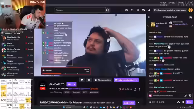 04:40:29Es werden Clips von Phil im Spiel angesprochen, bei dem dieser einen Killstreich von 43 erzielt hat. Ebenso wird ein Clip von Matze gezeigt, der in einer als geisteskrank empfundenen Rage mit einem Mitspieler streitet. Der Streamer äußert seine Freude und gleichzeitig seine Besorgnis über Matzes Ausraster, die ihm beklemmende Viben eines unvorhersehbaren Menschen vermitteln.