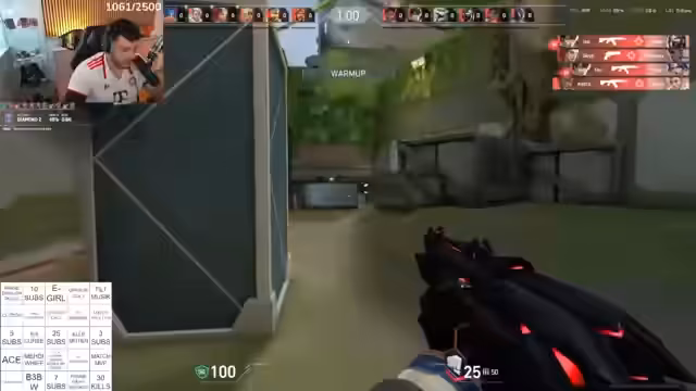 07:21:40Gegen Ende des Streams interagiert der Streamer stark mit seiner Community, bedankt sich für Spenden in Form von Bits und Prime-Subs und ruft die Zuschauer auf, das gleiche zu tun. Er erwähnt einen 9-3-Curse und ein mögliches Fake-Comeback im laufenden Spiel. Das Gameplay wird geprägt von verpassten Chancen und eigenem Fehlverhalten, insbesondere bei Spike-Plantings. Er kritisiert das fehlende Verständnis der Mitspieler und die unkoordinierten Aktionen des Teams. Der Stream endet abrupt mit den Worten 'Bis bald' während der Streamer mitten im Geschehen abbricht.