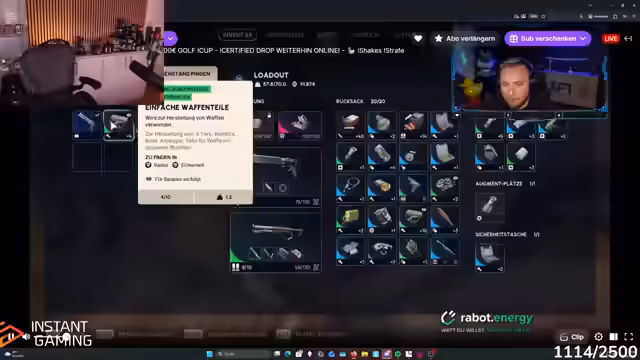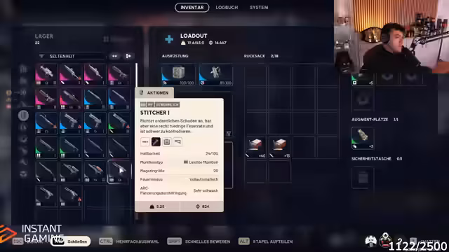 05:11:48Der Streamer reflektiert über den kürzlich stattgefundenen Golf Cup und äußert seine Begeisterung dafür. Er bedankt sich für die Einladung und betont die positiven Erfahrungen. Im Anschluss diskutiert er seine Waffenpräferenzen im Spiel, insbesondere die 'Bulette', die er als günstig zu craften und zuverlässig beschreibt. Er erwähnt, dass er die Waffe am häufigsten besitzt, obwohl er sie selten spielt. Die Diskussion dreht sich auch um die 'Renegade' und 'Stitcher' sowie deren Einsatzmöglichkeiten. Es wird über die Effektivität von Granaten und Heilgegenständen gesprochen, wobei der Streamer plant, einige kleine Granaten zu craften oder zu kaufen. Die Auswahl der Ausrüstung für die nächste Runde wird detailliert besprochen, inklusive Defibrillator und Zipline, um für verschiedene Situationen gerüstet zu sein. Die strategische Bedeutung der Ausrüstung und die Anpassung an die jeweilige Spielsituation werden hervorgehoben.