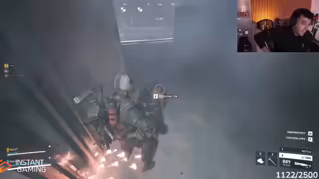 07:35:00Die Stimmung eskaliert, als der Streamer aggressiv auf gegnerische Spieler losgeht. Trotz des Einsatzes von Schutzausrüstung erleidet er Verletzungen und sein Schild wird zerstört. Er zwingt den Gegner in einen direkten Kampf, aber der Ausgang ist ungewiss und er muss sich neu orientieren und seine Taktik anpassen, um nicht ausgeschaltet zu werden.