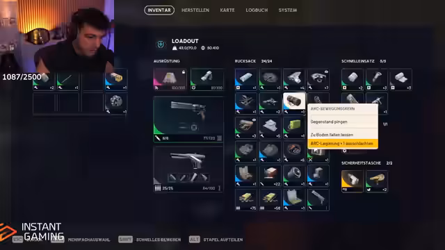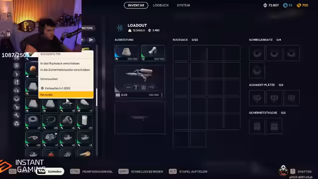 09:10:23Zu Beginn des Streams befasst sich der Streamer mit der Bewegung und dem Schutzcharakter in der Spielwelt, wobei er seine Ausrüstung strategisch einsetzt. Er diskutiert verschiedene blute Ausrüstungsgegenstände, wie zum Beispiel den blauen Rucksack mit 22 Slots und das blaue Schild, die er zur Optimierung seiner Überlebenschancen kombiniert. Der Streamer betont die Wichtigkeit der Inventarverwaltung, da bestimmte Gegenstände wie die blaue Kampfmarke genauso viel Platz wie ein Rucksack einnehmen können. Er stellt fest, dass er aufgrund der Spielmechaniken manchmal gezwungen ist, zwischen verschiedenen blauen Gegenständen zu wählen.