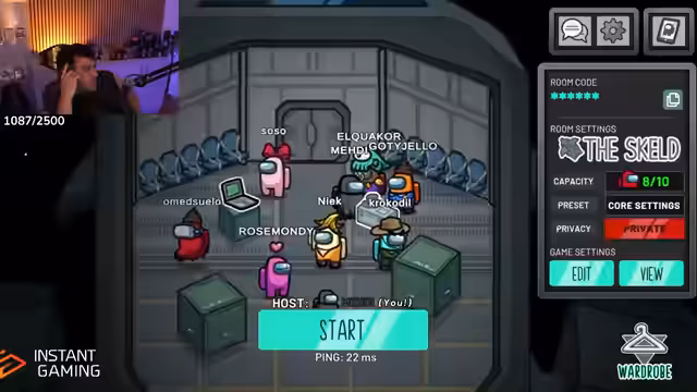 03:50:02Zu Beginn des Streams wird die Anwesenheit von drei weiblichen Spielerinnen hervorgehoben und die Regeln bezüglich Beleidigungen klargestellt, wobei F-Bot ausgenommen wird. Es entsteht eine humorvolle Diskussion über die weibliche Form von 'Bastard'. Kurz darauf wird eine neue Lobby eröffnet, da Matze anfangs fehlt. Es kommt zu Verwirrungen beim Lobby-Host und der Spieler Omet wird aufgefordert, die Lobby zu verlassen, nachdem er sich selbst als dumm bezeichnet hat. Die Runde startet mit der Rollenverteilung Imposter und Hausverteiler, während Musik im Hintergrund läuft und die Spieler auf ihre Positionen gehen.