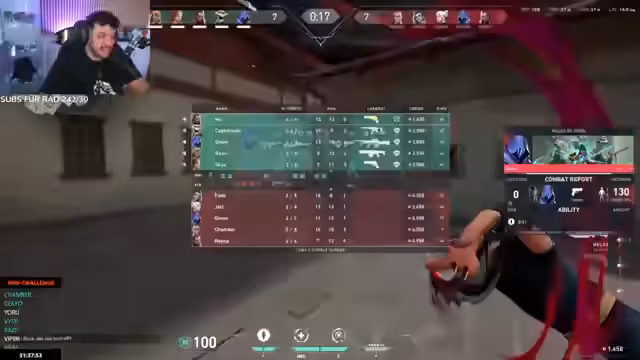 00:21:48Der Streamer taucht wieder in das Spiel ein, äußert jedoch starke Frustration über die Performance und die mangelnde Kommunikation im Team. Er klagt über fehlende taktische Calls von Pannewitz, der scheinbar dauerhaft stumm ist und auf die Anweisungen nicht reagiert. Während er selbst versucht, das Spiel durch strategische Moves wie das Platzieren von Wänden und das Nutzen von Ults zu lenken, bleibt seine Teamarbeit unkoordiniert, was zu häufigen Todesfällen und verlorenen Runden führt.