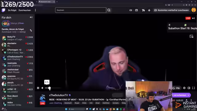 00:09:14Der Stream beginnt mit aggressivem Trashtalk und Beleidigungen gegenüber anderen Spielern. Nach der Eskalation wendet sich der Streamer an den Chat, um sich nach der Abwesenheit anderer zu erkundigen. Es folgen Erklärungen zu technischen Problemen mit der Kamera und der Ankündigung des Intros. Später im Stream gibt es dann Ankündigungen bezüglich FIFA 24 und EAFC 25. So wird klargestellt, dass jeder EAFC 25 zocken darf und das FIFA 24 ganz normal von Donnerstag auf Freitag gestreamt wird. Der Streamer plant, auch im Urlaub zu streamen, falls möglich. Es wird überlegt, ein FIFA-Team auf Footbin zu erstellen, um die aktuellen Daten einzusehen. Der Streamer äußert sich desinteressiert an der Eiken-League und Statements zu Coca-Cola. Er betont, dass er sich von solchen Themen nicht nerven lässt und verweist auf andere Streamer, die sich damit beschäftigen.