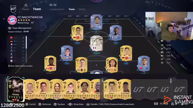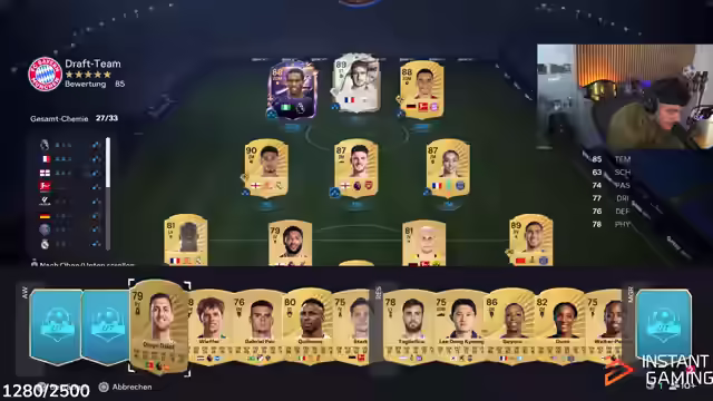 01:25:12Es wird von einem idyllischen Leben in Italien geträumt, mit Weinbergen, einem alten Steinhaus und freundlichen italienischen Nachbarn, die zum gemeinsamen Kochen einladen. Im FIFA Ultimate Team Bereich läuft es sehr gut, mit einem geschätzten Wert von 4,5 bis 4,6 Millionen, wenn alle aktuellen Spieler verkauft würden. Es wird überlegt, ob man jetzt noch eine Icon ziehen soll. Es werden verschiedene Spieler erwähnt, darunter Lorente, Inform, Leminha Mal und Mason (ehemals Sophia Smith). Es wird kurz über Instant Gaming Codes und die Villa von Bär diskutiert. Bakula wird als Spieler erwähnt, der im aktuellen Setup gut funktioniert, besonders in einer engen Raute Formation. Es wird festgestellt, dass es aktuell keine Instant-Karten gibt, da alles ausverkauft ist. Die Formation 4-Triple-2 wird gelobt und Spieler wie Zlatan Ibrahimovic werden erwähnt. Es wird überlegt, den Kaiser zu kaufen, der aktuell für 1,4 Millionen verfügbar ist, nachdem er zuvor für eine Million angeboten wurde. Stattdessen wird Frankie de Jong ins Auge gefasst, der bereits zuvor gezogen wurde.