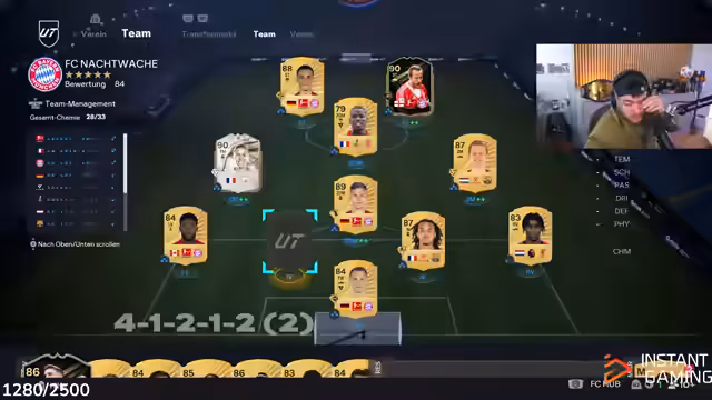 03:43:44Der Streamer öffnet verschiedene Packs auf der Plattform Instant Gaming und analysiert die gezogenen Karten. Er freut sich über gelegentlich gute Züge wie Bellingham und Rodrigo, die ihm einen Gewinn von mehreren hunderttausend Münzen bringen. Gleichzeitig ist er frustriert über häufige minderwertige Karten und die geringe Chance, wertvolle Icons zu ziehen, die den Pack-Opening-Prozess für ihn nicht profitabel erscheinen lassen.