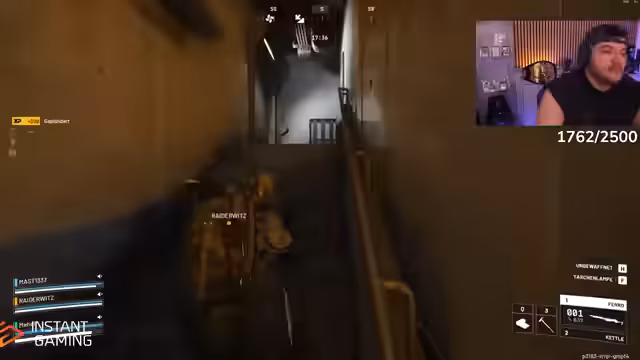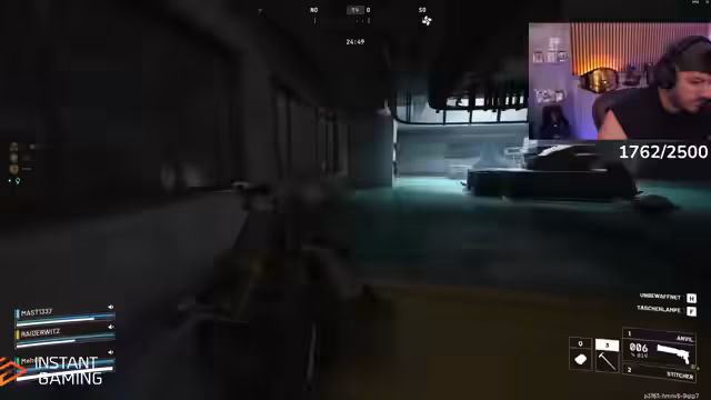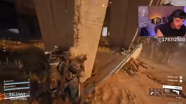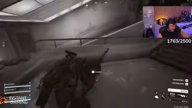 02:35:42Ein Teammitglied ist in einer verlorenen Situation und versucht, allein zum Extraktor zu gelangen, wobei ein spezieller Rucksack es auf 75% Leben hält. Währenddessen hat der Rest des Teams bereits den Extraktor erreicht. Es kommt zu einem dramatischen Höhepunkt, in dem das zurückgebliebene Mitglied angesprochen und aufgefordert wird, sich zu heilen, während Gegner es unter Feuer nehmen. Obwohl es sich in Deckung begibt, wird es letztlich besiegt, was zu einem Game Over führt und der Streamer den Verlust seines Inventars beklagt.