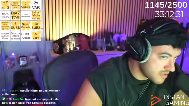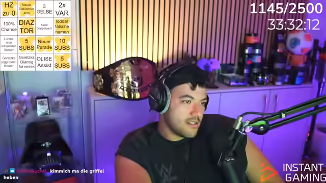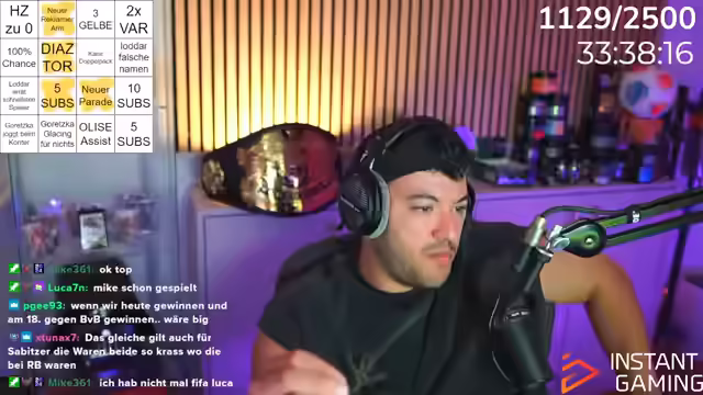 05:33:11Es wird über die Effizienz von Spielern wie Klaudia Pina und Prombrowski diskutiert, wobei der Fokus auf In-Game-Statistiken und potenziellen Spielentwicklungen liegt. Es wird die Frage aufgeworfen, wie das Bayern-Spiel weitergeht und die Schwierigkeiten, die im Spiel auftreten, thematisiert. Die Community wird aktiv in die Diskussion einbezogen, indem nach Meinungen zur eigenen Weekend League gefragt wird und auf Kommentare im Chat eingegangen wird. Es wird überlegt, ob Goretzka für Glazen ausgewechselt werden soll, was zu einer Diskussion über den Einsatz von Nashis führt, um Entscheidungen im Spiel zu beeinflussen. Es wird die Möglichkeit von PSN-Karten-Verlosungen für treue Chat-Teilnehmer in Aussicht gestellt, was die Interaktion und Beteiligung der Community weiter anregt. Der Streamer betont, dass es nicht an ihm liegt, ob die Verlosungen stattfinden, sondern an der Beteiligung des Chats.