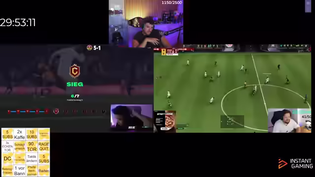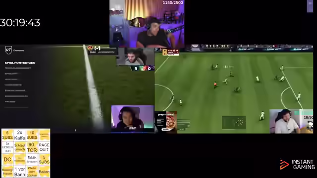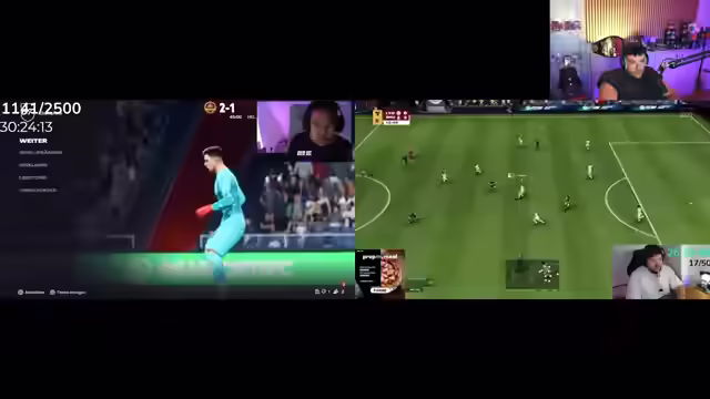 09:25:42Es wird ein schönes Tor im Spiel von Pannewitz hervorgehoben und sein überraschend gutes Spiel kommentiert. Es wird spekuliert, dass er Erfahrung hat, anders als andere Streamer, die das Spiel zum ersten Mal spielen. Es wird betont, wie wichtig Caseys gestriger Sieg war. Die Frage nach dem besten Dribbler auf dem PC wird aufgeworfen und verneint. Es wird erwähnt, dass es keinen Spaß macht, Sid beim Spielen zuzusehen. Es wird ein Multitwitch mit Casey eingerichtet und Werbung für Instant und Wintergaming gemacht. Es wird angekündigt, dass am nächsten Tag alle Games mit Eli gespielt werden. Caseys gestriges Verhalten auf dem PC wird thematisiert und Pannewitz' überraschender Anschluss-Treffer kommentiert. Es wird über das aggressive Verhalten von Casey diskutiert und seine Reaktion auf das Spielgeschehen. Es wird die Frage aufgeworfen, was passiert, wenn Play schlechter ist und Pannewitz auf dem PC 1-1 startet. Es wird überlegt, was die Erklärung dafür ist. Es wird über Caseys Fluchen und Schimpfen diskutiert und die Notwendigkeit von Lemesshaften betont. Es wird überlegt, ob Caseys Kinder und Frau Ohrenstöpsel tragen müssen. Es wird festgestellt, dass Casey fünf Schüsse hat und fünf Tore erzielt. Es wird die Aussage getroffen, dass kein einziges Spiel auf dem PC verloren wird, außer gegen einen Hacker.