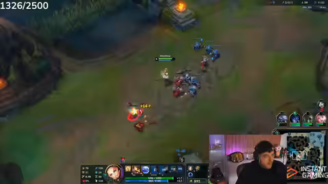 05:52:43In einer späten Spielphase wird eine Entscheidung getroffen, den Baron Nashor zu machen, um eine letzte Möglichkeit zum Sieg zu nutzen. Der Streamer führt einen 'Volli-Bär', was ihm jedoch nicht zum Sieg verhilft. Er fordert seine Mitspieler auf, zusammenzubleiben und sich auf ihn als Tank zu stützen. Die Aktion misslingt, als der Gegner mit einem gezielten Blitzschlag einen Teamkameraden tötet, was zur endgültigen Niederlage führt.