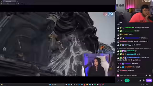 03:49:04Das Gameplay in Elden Ring wird als sehr anspruchsvoll beschrieben, besonders bei Bosskämpfen, die zu Panikattacken führen können, wenn sie mehrere Attacken spammen. Der Streamer gibt Tipps zur Spielfigur, wie man früh Kräfte und Ausdauer verbessern sollte, und kritisiert, dass der Chat beim Zocken 'bricht' und sich nicht konzentriert. Er offenbart seine dunkle Seite im Gaming und fragt den Chat, welches Spiel seine 'dunkelste Seite' hervorruft. Er entscheidet sich für Valorant, weil es ihn in Rage versetzt, da man den Mitspielern dort nicht entkommen kann und er deren Inkompetenz mitansehen muss. Dies führt zu einem erhöhten Puls und starkem Frust.