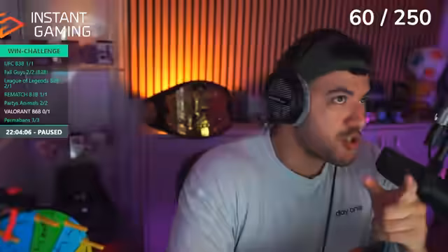 07:46:02Der Streamer startet einen Valorant-Wettkampf mit dem Ziel, fünf Siege in Folge zu erzielen. Er schildert den intensiven Verlauf der Spiele, in denen er und sein Team kämpfen, sich aber teils unkoordiniert gegen den Gegner verhalten. Er zeigt sich frustriert über das Spiel und den Chat, den er als anstrengend und geistig krank beschreibt, da er ständig dieselben Fragen hört und sich im Kreis zu drehen scheint.