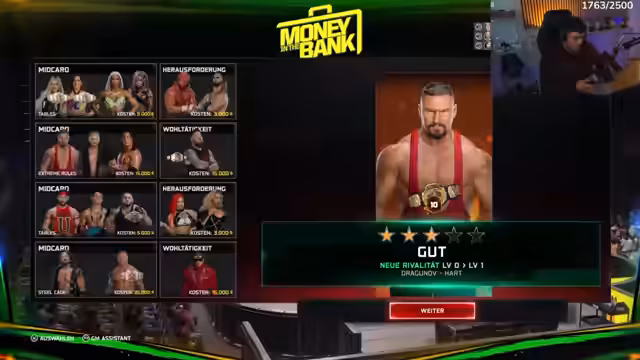 05:51:47Es wird kurz über Taktiken für das Spiel Among Us gesprochen, wobei der Fokus darauf liegt, oft Imposter zu werden und die Namen der Spieler zu nutzen. Anschließend wird wieder auf WWE-Strategien eingegangen. Es wird überlegt, CM Punk in das Money in the Bank Match zu schicken, um 100.000 zu erhalten. Es folgt eine Diskussion über die Qualität verschiedener Matches und die Leistung der Konkurrenten. Es wird überlegt, wie man Paul Heyman austricksen kann. Der Streamer nimmt an einem Glücksspiel teil, bei dem sieben Superstars 35 Popularitätspunkte erhalten, während drei andere verlieren. Es wird überlegt, wie man Tegan Nox in dieser Woche eine Promo machen lassen kann, um Eigenwerbung zu betreiben. Es werden verschiedene Match-Konstellationen und Titelkämpfe geplant, wobei der Fokus darauf liegt, Rivalitäten zu beenden und die Popularität der eigenen Superstars zu steigern. Es wird auch überlegt, welche Art von Wrestlern man benötigt, um das Roster zu verstärken, wobei der Fokus auf Face-Wrestlern und Tag Teams liegt.