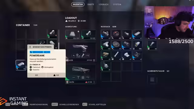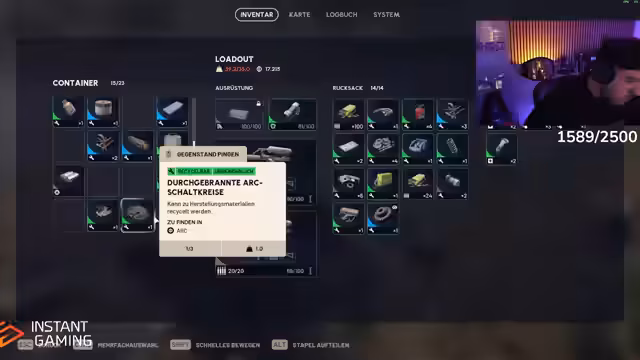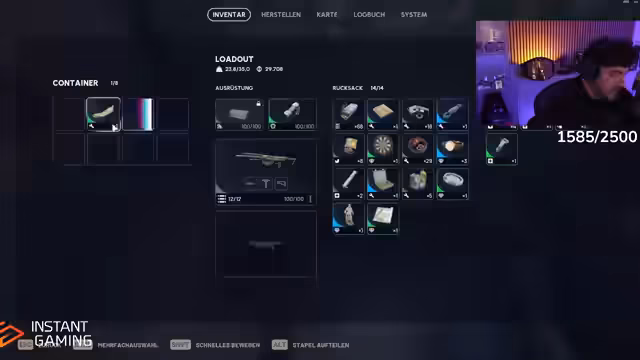 05:09:33Nachdem die Werkbank eingerichtet ist, stellt der Streamer Vital-Spritzen und andere nützliche Gegenstände her. Er optimiert seine Ausrüstung durch das Kombinieren von Komponenten und betont die Wichtigkeit von ausreichend Schutzschilden, insbesondere blauen Schilden, die mehr Schutz bieten. Dabei gibt er Tipps zur effizienten Nutzung von Ressourcen und Inventarmanagement.
