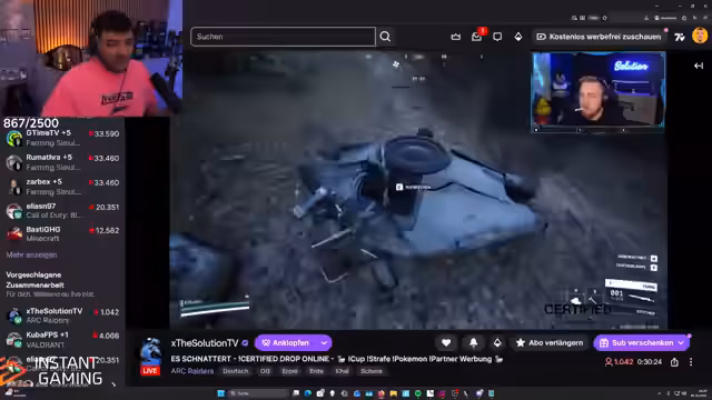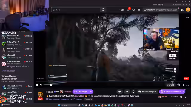 03:28:35Der Streamer bewirbt seinen Partner Instant Gaming und weist auf die Möglichkeit hin, das Spiel 'ArcGray' sowie andere Spiele und Guthabenkarten zu reduzierten Preisen über seinen RefLink zu erwerben. Er betont die Vorteile des Black Friday und die damit verbundenen Rabatte. Nach der Werbeunterbrechung beschließt er, einen weiteren Versuch in Stella Montes zu wagen, diesmal mit einer zeitlichen Begrenzung, da er sein Essen im Airfryer zubereitet. Die Angst vor dem Verlust des Inventars wird angesprochen, aber der Streamer argumentiert, dass der Spaß am Spiel den potenziellen Verlust von Ausrüstung überwiegt. Er setzt einen Timer für sein Essen und stürzt sich erneut in den Kampf, um alles zu 'ficken'. Die Runde beginnt chaotisch, mit sofortigen Gefechten und der Notwendigkeit, schnell zu handeln und sich zu verteidigen. Die Interaktionen mit anderen Spielern sind von Misstrauen geprägt, und der Streamer muss seine Gegner schnell ausschalten, um zu überleben.