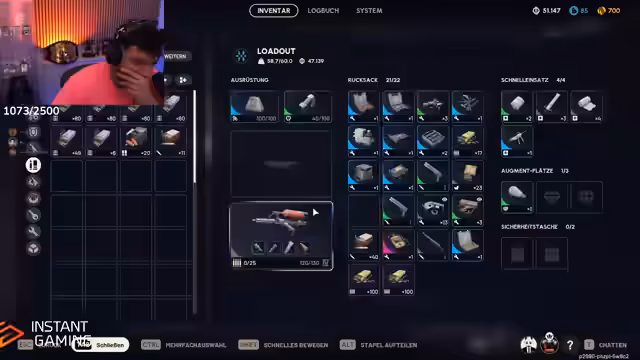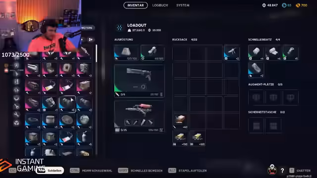 02:48:29Der Streamer konzentriert sich auf die Verbesserung seiner Waffen und die Erfüllung von Quests. Er plant, seine Pumpgun zu verbessern und Mod-Komponenten zu sammeln. Die Herstellung von Gegenständen wie der Treuen Anvil erweist sich als mühsam, da ständig mechanische Komponenten und Metallteile benötigt werden. Die Schwierigkeiten bei der Beschaffung von Ressourcen führen zu Frustration, aber auch zu kreativen Lösungen, wie dem Recyceln von nicht benötigten Gegenständen. Er überlegt, ob er eine Bolletta 1 recyceln soll, um sich auf eine Quest zu konzentrieren, die eine Bolletta 3 verspricht. Die strategische Entscheidung, welche Waffen und Ausrüstungsgegenstände behalten oder verkauft werden sollen, ist ein wiederkehrendes Thema. Der Streamer erwähnt auch die Möglichkeit, mit Danny in den Stream zu gehen, um gemeinsam Quests zu erledigen und bessere Ausrüstung zu finden. Die Notwendigkeit, ständig das Inventar zu verwalten und Ressourcen zu optimieren, steht im Vordergrund.
