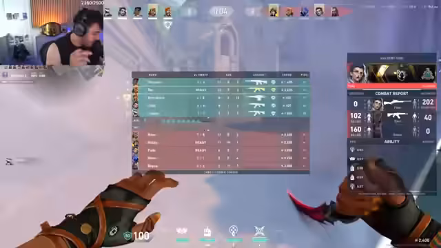 00:21:45Der Streamer berichtet über ein gewonnenes Match mit 30 Kills und Persiano mit einem Prime. Er beklagt das Warmwerden und die Hitze in seiner Umgebung. Während des Spiels kritisiert er sein Team für schlechte Taktiken, wie unnötiges Fünfer-Peaking, und zeigt sich frustriert über die Performance seiner Mitspieler, die zu Fehlern und verlorenen Runden führen.