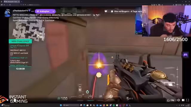 04:23:58Der Streamer nimmt an einer 'Win Challenge' im Spiel Valorant teil, fühlt sich jedoch von seinem Mitspieler im Stich gelassen. Dieser erklärt ihm den Champion 'Astra' nicht und gibt keine Calls, was den Streamer verärgert und frustriert. Er empfindet das Spiel für Anfänger als 'unerträglich' und kompliziert, was seine Leistung und Motivation beeinträchtigt.