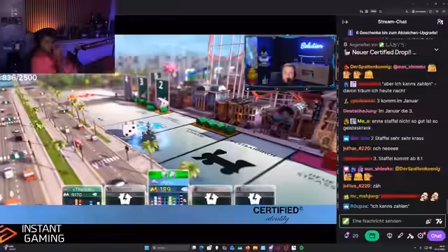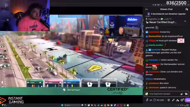 02:32:25Die Spieler äußern weiterhin ihre Unzufriedenheit mit der aktuellen Verteilung der Straßen und Immobilien im Monopoly-Spiel. Es wird der Wunsch nach einem 'Gamecrush' geäußert, möglicherweise in Anlehnung an ein reales Event in Berlin. Ein Spieler überlegt, ob er 'Orange' und 'Rot' gegen 'Braun' tauschen soll, um eine bessere Position zu erhalten. Die Diskussion dreht sich um die Wertigkeit von Straßen und die potenziellen Vorteile bestimmter Farben. Ein Spieler stellt fest, dass 'Matze' bereits sechs Straßen besitzt, was als unfair empfunden wird, da es den Anschein erweckt, als gäbe es einen 'Host-Vorteil'. Die Spieler erinnern sich an frühere Niederlagen und die Schwierigkeit, in diesem Spiel zu gewinnen, was die allgemeine Frustration über die Spielmechanik und die scheinbar ungleichen Chancen verstärkt.