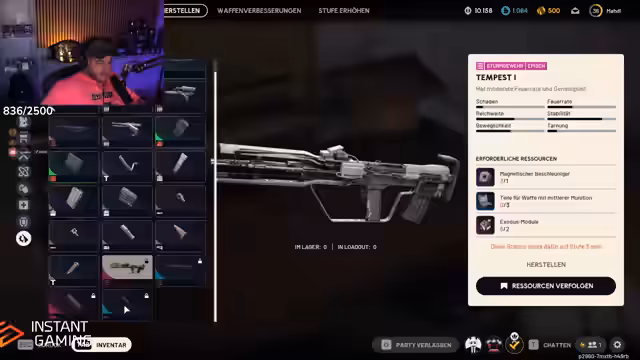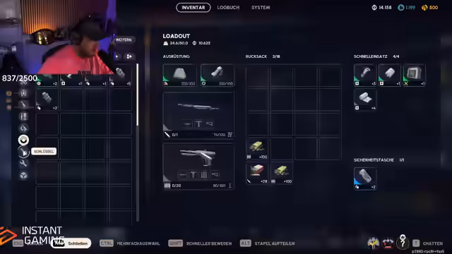 04:44:46Ein Spieler listet sein umfangreiches Inventar auf, darunter verschiedene Waffen wie 'Stitcher 3', 'Anvil 4', 'Osprey 2' und mehrere lila Rucksäcke. Er betont, dass er alles gesammelt hat und nur am Looten war. Es wird humorvoll angemerkt, dass er beim nächsten Mal, wenn ein Teammate niedergeschlagen wird, dessen Loot nehmen wird, basierend auf einer früheren Vereinbarung. Es wird über die Möglichkeit eines Handels mit einem anderen Spieler gesprochen, der einen 'Hüllenbrecher' gefunden hat, im Austausch für einen 'Anvil-Bauplan'. Die Notwendigkeit von Waffenteilen und die Schwierigkeit, diese zu beschaffen, wird ebenfalls thematisiert. Die Spieler bereiten sich auf die nächste Runde vor, indem sie ihre Ausrüstung optimieren und überlegen, welche Waffen sie mitnehmen sollen.