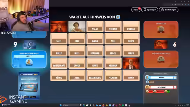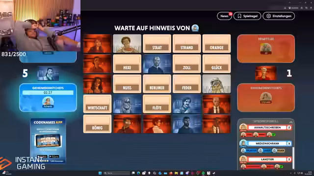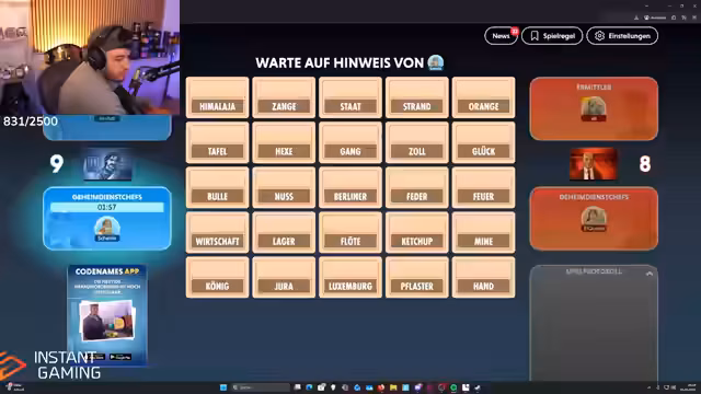 01:23:01Die Spieler besprechen ihre Strategien und überlegen, wie sie sich in kommenden Runden verbessern können. Es wird überlegt, in 'ArcGradius' zu gehen und einen Run für Werkstatt-Loot oder Hühnchen-Loot zu machen, um Werkbänke zu verbessern. Die Suche nach Pilzen wird erwähnt, da diese selten sind und für Upgrades benötigt werden. Die Spieler erinnern sich an eine frühere Dreier-Runde und die damit verbundenen Herausforderungen. Das Codenames-Spiel beginnt, und die Regeln werden erneut erklärt, insbesondere die Notwendigkeit, immer die angegebene Anzahl an Wörtern zu wählen. Die Spieler diskutieren die Bedeutung von Wörtern wie 'Himalaya', 'Tafel' und 'Bulle' und versuchen, Verbindungen zu finden. Der Chat wird vorübergehend deaktiviert, um die Konzentration zu erhöhen. Die erste Runde ist geprägt von Unsicherheiten und Spekulationen über die richtigen Assoziationen, wobei 'Küche 2' als Hinweis gegeben wird. Die Spieler versuchen, passende Wörter wie 'Zange', 'Ketchup' und 'Gang' zu finden, was zu gemischten Gefühlen führt.
