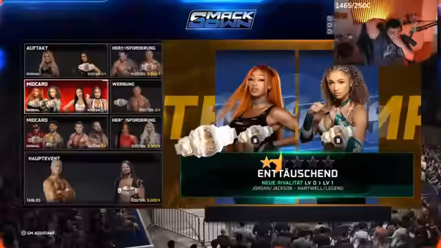 05:03:06Die Überlegung, Kalito zu verpflichten, wird fortgesetzt, und die Möglichkeit, Jimmy und Jey Uso für ein Bruder-gegen-Bruder-Match zu holen, wird diskutiert. Es wird überlegt, ob man das verbleibende Budget für zwei weitere Frauen nutzen sollte. Der Fokus liegt zunächst auf Kalito, um das Budget besser einschätzen zu können. Es wird erwähnt, dass noch 1,3 Millionen zur Verfügung stehen. Es wird der Wunsch nach gebratenem Reis mit Hähnchen geäußert. Es wird der Verdacht geäußert, dass René bei der Reihenfolge der Picks getrickst hat, da hauptsächlich SmackDown-Wrestler ausgewählt wurden. Die Planung für die ersten vier Wochen, einschließlich des Royal Rumble, ist bereits abgeschlossen. Es wird die Frage aufgeworfen, wie der Royal Rumble in das MyGM-Format integriert werden kann. Es wird erwähnt, dass Go-Home-Shows wichtig sind und dass die Regeln später nochmals erklärt werden. Es wird festgestellt, dass es sich um Zufall handelt, dass so viele SmackDown-Wrestler ausgewählt wurden. Es wird festgestellt, dass nach dem Kauf von Kalito noch 1,2 Millionen übrig sind. Es wird überlegt, ob man weitere Männer oder Frauen verpflichten soll, wobei die Vorteile von mehr Frauen im Falle von Verletzungen betont werden. Da es keine Frauentitel bei WCW gibt, wird argumentiert, dass vier Frauen ausreichen könnten. Es wird beschlossen, zwei weitere Männer und zwei weitere Frauen zu verpflichten, wobei für die Frauen etwas mehr Geld ausgegeben werden soll. Das Ziel ist es, mit etwa 500.000 in die Shows zu starten, um in den ersten Wochen mit "Bucken" zu knallen.