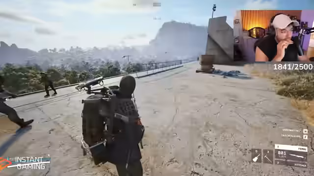 00:21:30Der Streamer betritt das Spiel wieder, nachdem er einen Snack zu sich genommen hat. Er kommuniziert proaktiv mit anderen Spielern und versucht, situationsangemessen zu handeln, mal freundlich ('Hello guys, I'm friendly') und mal aggressiv. Er erläutert seine Taktik, verschiedene Waffen einzusetzen, je nach Situation. Der Fokus liegt auf guter Teamarbeit, das Ernten von Ressourcen und dem Verständnis für die Spielmechaniken, um effizient zu looten und zu überleben.