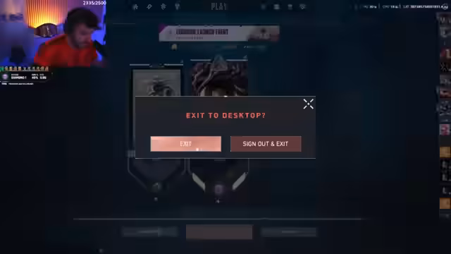 11:10:10Der Streamer signalisiert seinen Wunsch, das aktuelle Match zu verlassen. Er möchte stattdessen wieder in die Warteschlange für ein neues Match eintreten. Er erwähnt, dass Thoraf gerade einen Kill Bounty bekommen hat, und drückt seinen Wunsch aus, dieses Match zu beenden, um eine neue Runde zu starten und sein Glück zu versuchen. Der Chat wird gebeten, kurz zu warten, bis der Wechsel vollzogen ist.