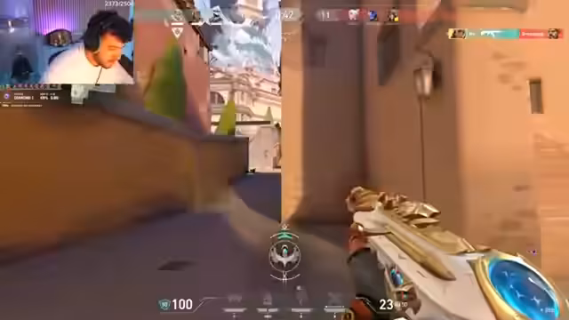 11:39:54Der Streamer gibt seinem Mitspieler strategische Anweisungen. Er plant einen 'Wallen'-Angriff, während er gleichzeitig im Chat nach technischer Unterstützung sucht. Er bittet den Chat, ihm die Position des Gegners mitzuteilen, da er selbst nicht alles sehen kann. Die Kommunikation zielt darauf ab, den Gegner auszumanövrieren und die Runde für das Team zu sichern.