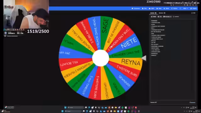 12:15:00Der Stream startet mit intensiven Ingame-Situationen, in denen der Sprecher über spielerische Entscheidungen und Aktionen spricht. Es geht um eine Ecke im Spiel, die zu einem Tor führen könnte. Es wird die Leistung von Spielern wie Rayna und Breach diskutiert, wobei Rayna mit einem 'One-Hit' hervorgehoben wird. Der Sprecher interagiert stark mit dem Chat, fragt nach Namen und offeriert im Austausch gegen Subs das Drehen am 'Rad' des Streams, was ein zentrales Interaktionsformat darstellt.