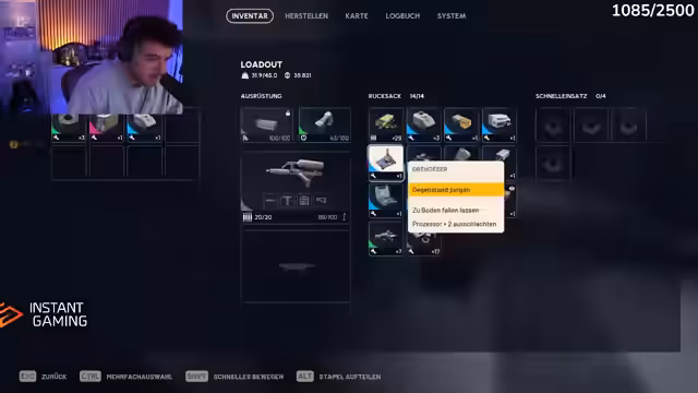 05:59:26Während des Streams wurde viel über Loot und Waffen gesprochen. Es gab eine lebhafte Diskussion darüber, ob die Kettle-4 oder die Tempest die bessere Waffe ist. Der Streamer konzentrierte sich stark auf das Sammeln von Ressourcen wie Schildauflader, Prozessoren und Baupläne. Die strategische Vorbereitung der Ausrüstung zwischen den Runden wurde als entscheidend für den Erfolg im Spiel angesehen, insbesondere um sich für schwierige Kämpfe zu wappnen.