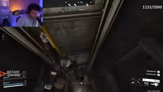 04:51:32Der Streamer hat einen Gegner niedergestreckt und ist mit einem extrem schweren Rucksack voller hochwertiger Beute unterwegs, darunter ein Equalizer und Queen-Reaktoren. Seine Ausdauer ist erschöpft, was das Tragen der Beute zur Herausforderung macht. Er läuft auf einen Extraktionspunkt zu, wird aber unter Feuer genommen. In einem knappen Kampf gelingt es ihm und seinem Teammitglied, sich auf die extraktionsnahe Platform zu retten, um dann mit dem Schlüssel sicher zu entkommen.