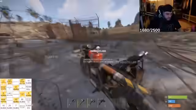 04:19:56Ein Spieler wird von einem anderen Spieler namens Miki getötet und verliert seinen gesamten Schrott. Die Allianz mit anderen Spielern wird als Verrat angesehen und Rache geschworen. Es wird überlegt, eine Allianz mit anderen Spielern zu bilden, um sich zu rächen. Es wird diskutiert, wie man an Kürbisse kommt, da diese als gutes Essen gelten. Ein Spieler findet ein Kajak. Es wird überlegt, im eigenen Gebiet zu bleiben, Ressourcen zu farmen und Waffen herzustellen, um sich zu verteidigen. Ein Spieler kann nicht respawnen und es wird vermutet, dass dies nur begrenzt möglich ist. Die Base wird in Augenschein genommen und der verlorene Schrott betrauert. Es wird beschlossen, ein Lager mit vielen Kisten zu bauen. Es wird überlegt, wie man die Basis sicherer machen kann, beispielsweise durch Selbstschutzanlagen. Ein Spieler wird von einer Selbstschutzanlage getötet. Es wird überlegt, wie man eine Spitzhacke herstellen kann. Es wird festgestellt, dass eine Werkbank der Stufe 1 erforderlich ist. Es wird beschlossen, dass ein Spieler den Schrott nutzt, um die Spitzhacke herzustellen, damit nicht jeder leveln muss. Ein Spieler fragt nach Hilfe und bietet an, sich einem Team anzuschließen. Es wird überlegt, wie man den Schlafsack aufheben kann. Ein treues Pferd wird gefunden und es wird überlegt, wie man es nutzen kann. Es wird ein Clip von dem Mord durch Miki gefordert und Rache angekündigt.
