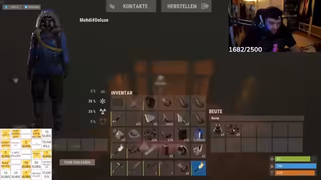 06:18:20Während ich von einem Fußballspiel höre, werde ich informiert, dass Danny von Dalu getötet wurde und viel Loot verloren hat. Ich frage mich, wo Danny die ganze Zeit ist, da er oft stirbt. Ich benötige noch 200-300 Schrott für Pistolen. Ich wollte eigentlich ein Schwert machen. In einer Kiste sind 160 Schrott. Wir haben Revolver und ich kann SMGs machen. Ich komme bald und wir sind bald versteckt. Ich werde zu meinem Tod gehen, da ich auf einem Pferd friedlich erschossen wurde. Ich werde einmarschieren und brauche einen Rucksack. Daniel hatte 700 Schrott dabei. Ich werde zeigen, was ich mache. Ich werde feuern, sobald mein Maschinengewehr fertig ist. Koko ist sowieso gegen uns. Yoshi ist im Krokum-Team und ich werde in Discord gehen, um das zu klären. Ich gehe los, um Schrott zu besorgen und komme mit 150 zurück. Ich brauche 125 Schrott und will zwei Armbrüste. Ich glaube, die Knochenhelme sind gut und wir müssen die Rüstung für jeden voll machen. Wer uns getötet hat, wird leiden. Ich mache unendlich Pistolen-Bullets. Ich bin gespannt, was Danny macht. Ich mache nur Schwert und Messer. Ich bin unterwegs und rüste uns mit der Crème de la Crème aus.