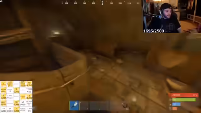 05:45:35Es wird überlegt, wann der Streamer morgen wieder online sein wird. Es wird überlegt, was alles in den Recycler reingeschmissen werden soll. Es wird überlegt, ob sie sich vor einem Heli verstecken müssen. Der Plan ist, farmen zu gehen und Schrott zu sammeln, um Rüstung und einen Rucksack herzustellen. Es wird diskutiert, wo man einen Rucksack herbekommt. Ein AirDrop kommt. Danny wird von Zane abgeknallt. Der Streamer will Schrottfarmen gehen und Rüstung fertig machen. Es wird überlegt, was für einen Rucksack benötigt wird. Es wird Stoff benötigt. Die Gruppe will Rucksäcke ready machen. Ein Rucksack wird hergestellt und benutzt. Es wird überlegt, woher man die Munition für die Waffen bekommt. Es wird Schwefel benötigt. Die Gruppe versucht, ein Bett für einen Spieler zu machen. Es wird Schrott gefarmt, um Rüstung zu haben. Die optimale Rüstung wird gesucht. Ein Spieler sucht einen Schatz. Ein Bett wird für einen Spieler gemacht. Es wird Muni hergestellt. Ein Bär taucht auf und tötet einen Spieler. Die Gruppe soll den Loot des Spielers holen. Der Streamer ist am kochen und hat viel Stoff. Er fragt sich, wie man Items aufteilen kann. Die Gruppe will früh Rüstung und früh Waffen haben. Sie dürfen nicht vergessen, dass Yushis Team im Nacken sitzt. Die Gruppe hat einen ehrenlos abgeschlachtet. Sie will Schrott für Kilian. Es werden Pistolen benötigt. Die Gruppe braucht Rüstung. Ein Rucksack soll mitgenommen werden. Ein Spieler wird bedroht. Es wird überlegt, mehr Öfen zu machen. Ein Bär taucht auf und tötet einen Spieler.
