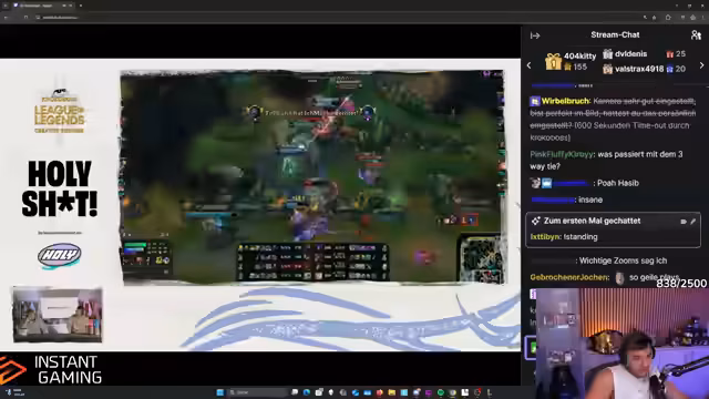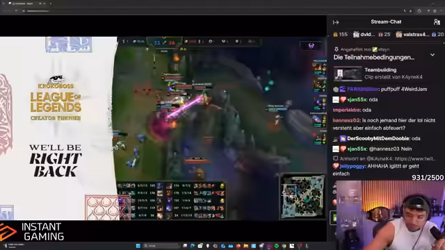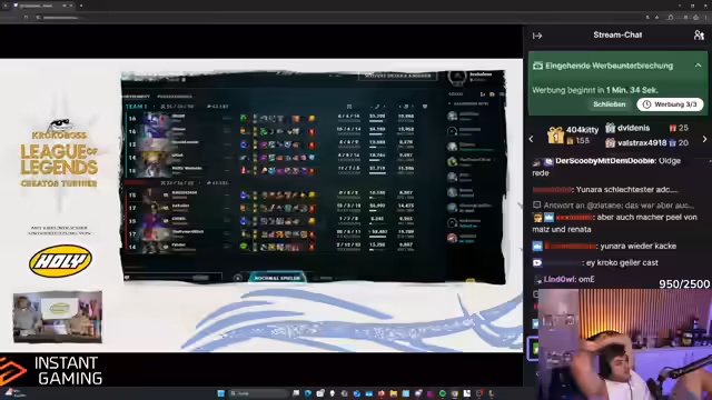 04:42:00Der Streamer zeigt sich beeindruckt vom schnellen Fortschritt des League of Legends-Turniers, besonders im Vergleich zu anderen Spielen wie Fortnite. Er lobt die Effizienz der Organisation und die Einhaltung des Zeitplans. Es wird eine Strategie für die nächsten Matches besprochen, um die verlorene Runde wettzumachen. Dabei werden spezifische Champion-Picks wie Ornn, Lissandra oder Zyra und Bans wie Jarvan und Zed in Betracht gezogen. Das gegnerische Team, insbesondere der Spieler Romatra, wird als stark eingeschätzt, wobei seine Caitlyn-Fähigkeiten hervorgehoben werden. Die Möglichkeit, Romatra auf einem Zweitkanal streamen zu sehen, wird ebenfalls erwähnt, was zu Diskussionen über die Gründe dafür führt.