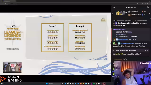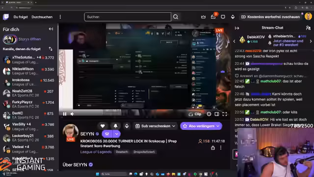 00:14:42Der Streamer kündigt einen League of Legends Cup an und betont die Wichtigkeit, viele Clips zu erstellen, die Fails, geile Aktionen und lustige Momente festhalten. Diese Clips sollen an die Mods von Kroko geschickt werden, der möglicherweise ein Best-Of erstellen möchte. Er äußert seine Vorfreude auf den Cup und das Spielen mit seinen Teamkollegen, darunter Danny. Die ersten Spiele sollen um 15:30 Uhr beginnen. Er sucht nach einem Bracket oder einer Teamliste von Kroko, um sich über die Paarungen zu informieren. Der Streamer plant, den Kroko-Stream nebenbei laufen zu lassen, da er sich nicht gut fühlt und eine Aspirin nehmen muss. Er hofft auf einen erfolgreichen Cup mit vielen Zuschauern und reibungslosem Ablauf, damit solche Events öfter stattfinden können. Er erwähnt, dass Danny ebenfalls live ist und bereits viele Zuschauer hat, was auf einen erfolgreichen Tag für League of Legends hindeutet.