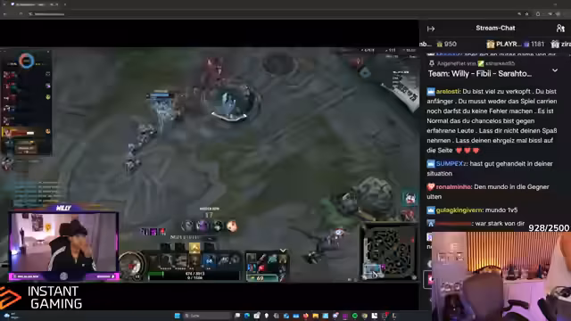 01:21:13Zu Spielbeginn konzentriert sich der Streamer auf das Farmen und das Management der Lane-Wellen. Er kommuniziert mit seinem Team, speziell mit der Top-Lane ('Willi'), und plant, nach oben zu gehen. Nach einem wichtigen Anruf kommt er zurück ins Spiel und diskutiert mit seinem Support über die Wahl der Schuhe. Währenddessen hält er die Wave, um Vorteile im Lane-Pressure zu erzielen, und sichert sich einen kleinen CS-Vorteil. Das Team koordiniert den Drachen-Bust und das Halten der Wave, um den Gegnern keine Vorteile zu lassen.