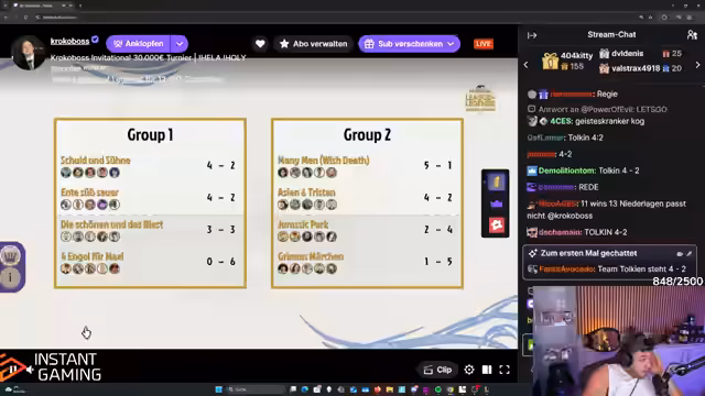 08:44:37Nach einer langen Wartezeit wurde bekannt gegeben, dass das Team aufgrund der kürzesten Game Time automatisch weiter ist. Diese Nachricht wurde mit großer Freude aufgenommen, während gleichzeitig Kritik an anderen Teams geäußert wurde, die angeblich keine Lust mehr hatten zu spielen. Insbesondere wurde die Haltung eines Teams, das aufgrund von Müdigkeit oder mangelnder Bereitschaft nicht mehr spielen wollte, als 'Fotz-Mentalität' und 'widerwärtig' bezeichnet. Die Spieler äußerten Unverständnis darüber, wie man nach acht Stunden Spielzeit und einem so wichtigen Turnier plötzlich aufgeben könne, anstatt den Kampfgeist zu zeigen. Es wurde auch die Situation um Sascha diskutiert, der ursprünglich nicht mehr spielen konnte, aber dann doch bereit war, um ein Ausscheiden seines Teams zu verhindern.