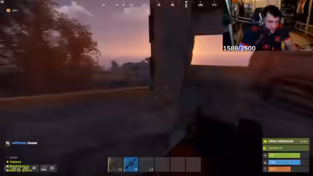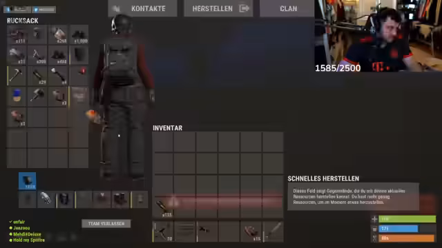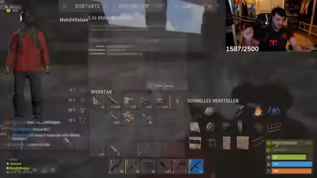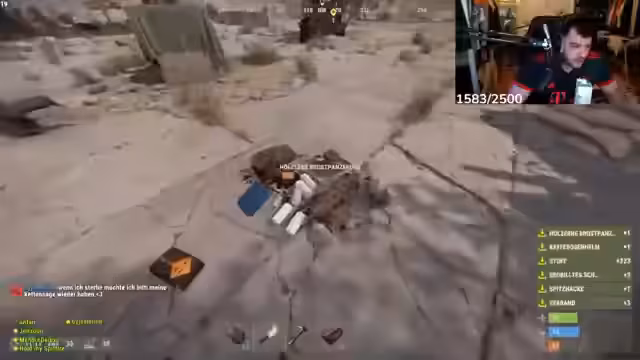 00:08:20Zu Streambeginn steigt der Streamer ins Spiel Rust ein. Das Team um den Streamer plant, Ressourcen wie Samen zu farmen, und erfährt plötzlich, dass sie den ersten Platz in der aktuellen Runde belegt haben. Diese unerwartete Erfolgsmitteilung im Chat wird mit Begeisterung und dem Ruf nach einer Belohnung aufgenommen. Der Fokus liegt darauf, Ressourcen wie Stein und Holz zu sammeln, um die Basis aufzubauen und zu erweitern. Ein wichtiges Ziel ist es, eine sichere und gut organisierte Basis mit sortierten Kisten zu schaffen, um zukünftige Raids besser bestehen zu können.
