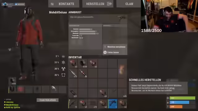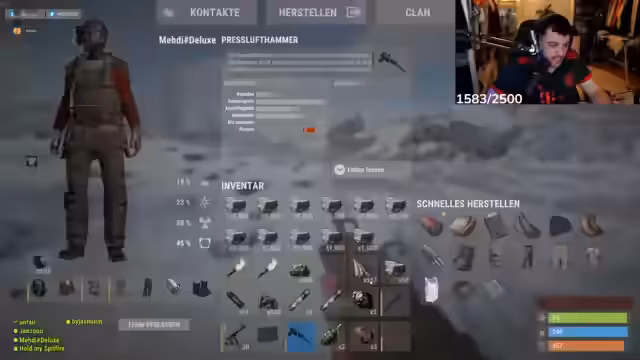 06:07:38Es wird über einen Kampf berichtet, bei dem Danny jemanden abgeknallt hat. Es wird die Treue von Spielern hervorgehoben, die die Basis verteidigen. Ein dicker Schmelz wird erwähnt. Es wird über die Herstellung von hochwertigem Metall aus Erz diskutiert. Die benötigte Munition für AKs wird erfragt. Es wird überlegt, ob man zu einer anderen Basis gehen kann, um etwas zu holen. Es wird überlegt, Strom in der Basis zu installieren, wobei Solarpanels und eine Large Battery erwähnt werden. Es wird diskutiert, wer zuerst geschossen hat und ob korrektes Verhalten im Spiel bestraft wird. Es wird ein Clip von einem erfolgreichen Kill gezeigt. Es wird die Suche nach Steinen angekündigt. Es wird ein Fernglas mitgenommen. Es wird erwähnt, dass jemand in Richtung der Basis läuft. Es wird über eine Alibi-Base gesprochen. Es wird überlegt, ob man für Steine losgehen soll. Es wird nach einer AK gefragt, die repariert werden muss. Es wird festgestellt, dass die MP5 Tier 3 ist und eine Workbench 3 benötigt wird. Es wird überlegt, wichtige Gegenstände in der anderen Basis einzulagern. Es wird überlegt, Windkrafträder zu bauen, aber Solarpanels werden als schneller umsetzbar angesehen. Es wird ein Bohrer benötigt. Es wird festgestellt, dass hauptsächlich Stein benötigt wird. Es wird nach Batterien für die Solarpanels gefragt.
