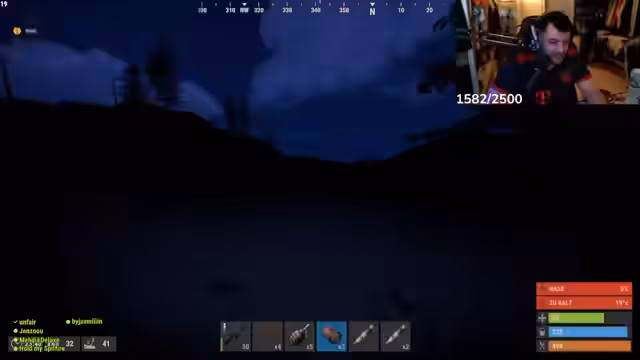06:48:04Bei Nacht wird das Farmen deutlich gefährlicher und anstrengender. Der Streamer kämpft mit der geringen Ausbeute an Ressourcen, insbesondere an Steinen, und mit dem Gesundheitsverlust durch Kälte. Er erwähnt die Furcht vor 'Bots' und versucht, Materialien so effizient wie möglich einzusammeln, während er auf den Sonnenaufgang wartet, um sicherer zu farmen.