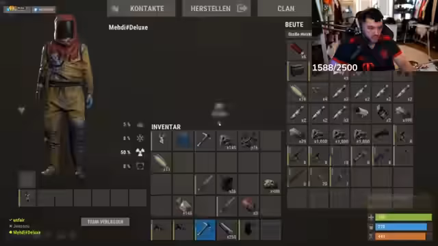 05:35:21Es kommt zu internen Spannungen, nachdem ein Mitspieler namens Ranzratte getötet wurde und seine Ausrüstung von der Gruppe sichergestellt wurde. Ranzratte fordert seine Items zurück, während der Streamer argumentiert, dass dieser zuvor auf das Team geschossen habe und daher keinen Anspruch auf Rückgabe habe. Dieser Konflikt beleuchtet die Mechaniken des PvP im Spiel und die oft unklare Moral innerhalb der Gruppeninteraktion. Gleichzeitig muss der Streamer das Team koordinieren, da ein weiterer Spieler namens Danny scheinbar nicht aktiv am Basisbau teilnimmt und stattdessen farmt.
